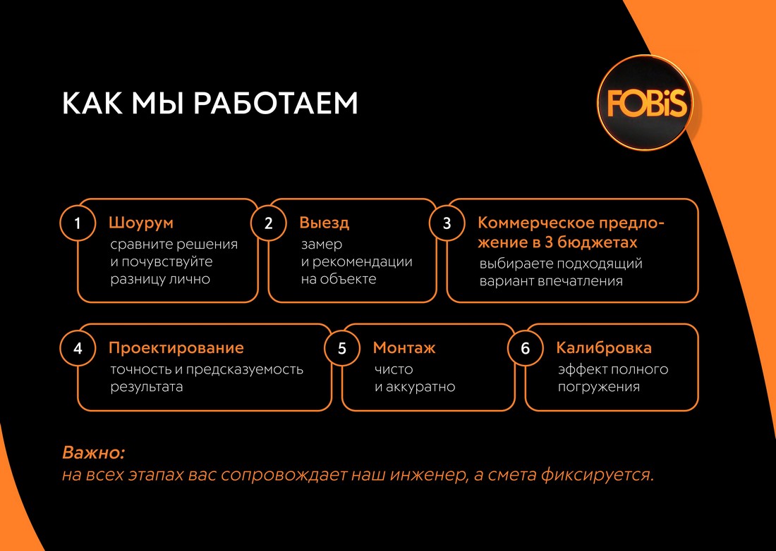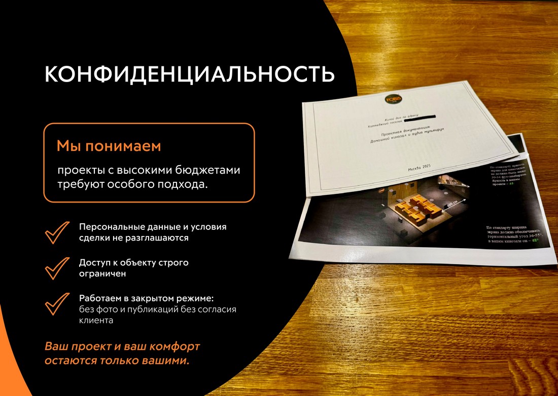 Потому что весь процесс от знакомства с вами в нашем шоу-руме до финального рукопожатия в вашем кинозале полностью у нас на контроле и в наших руках: