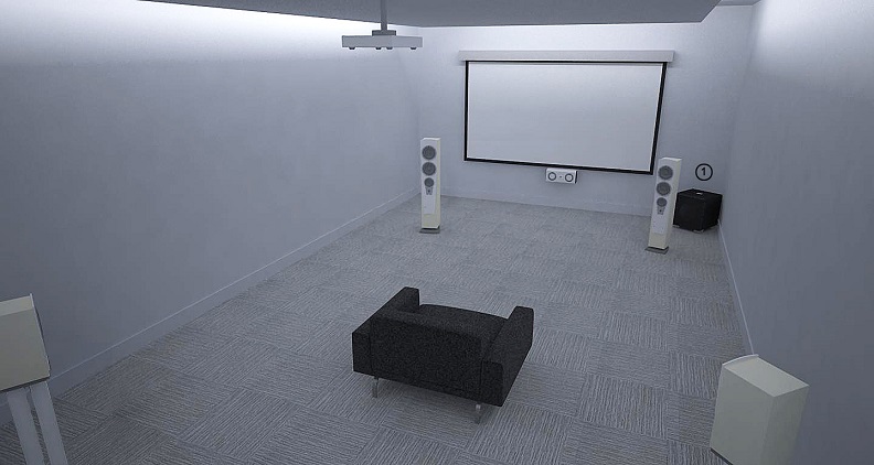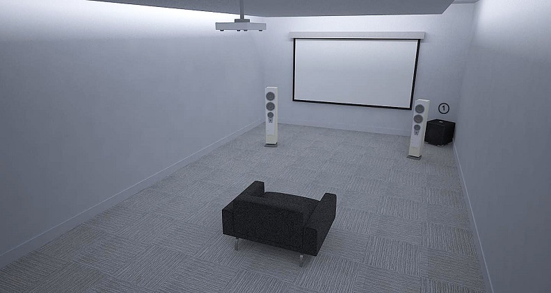 Идеальное расположение – это расположение в одном из двух передних углов (справа или слева от экрана и фронтальных колонок. Угловое позиционирование усиливает глубокий бас и обеспечивает большую эффективность.