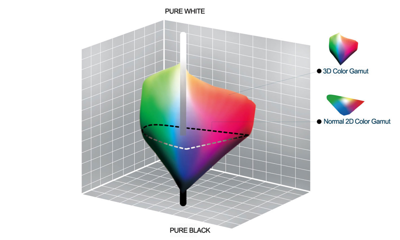 Еще один момент о цвете в HDR. Цветовая гамма - это на самом деле диапазон цветов, доступных на одном уровне яркости. Но поскольку HDR охватывает более широкий диапазон яркости, важно учитывать, что происходит с цветом при разных уровнях яркости. Так, понятие цветового объема стало более широко обсуждаться в последнее время. Цветовой объем HDR намного больше, чем у SDR, и цвета остаются более насыщенными при более высоких уровнях яркости.