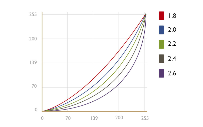 В видео SDR функция EOTF называется гаммой. Она появилась в ЭЛТ дисплеях из-за того, как люминофоры, покрывающие внутреннюю поверхность экрана, реагируют на различную интенсивность электронного луча, стимулирующего их свечение. Интересно, что он также оказывается примерно обратным логарифмическому отклику зрительной системы человека; по мере того, как значения яркости увеличиваются вдоль гамма-кривой, кажется, что яркость дисплея увеличивается более или менее линейно для наших глаз.