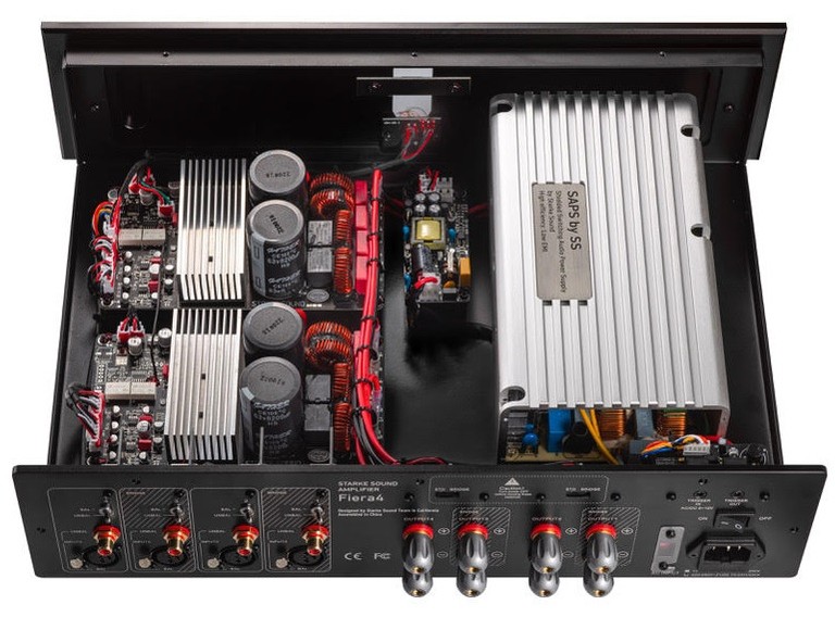 Fiera4 - это новая версия старого усилителя, который назывался AD4.320. Новый усилитель, по-видимому, является частью растущей приверженности Starke Sound усилителям класса D. Там, где старый усилитель полагался на мощный линейный источник питания, в новом усилителе используется импульсный источник питания. Одним из самых больших преимуществ импульсных блоков питания является возможность иметь универсальный блок питания, который работает в любой стране. Эти расходные материалы позволяют производителям сократить свои расходы до одной позиции блока питания вместо двух. Я давно являюсь поклонником хороших импульсных блоков питания, потому что они также позволяют создавать более «жесткие» блоки питания, которые меньше прогибаются под нагрузкой. Импульсные источники также часто имеют гораздо меньший уровень шума, чем линейные источники, при этом пульсации во много раз ниже. Это огромное преимущество в сверхмалошумящих усилителях.